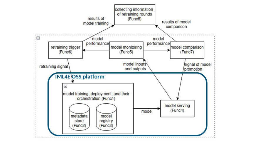CTCD-e (continuous-training-and-continuous-deployment-enabling) pipeline works on top of the IML4E OSS pipeline so that it can autonomously adapt ML systems to changing data by providing flexible CT and CD support for models. It can automatically start to retrain a model when its performance degrades, and automatically A/B test the retrained model against its predecessor in production.