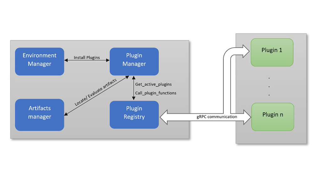 Figure 1 shows the architecture diagram of the Pipeline probe. As can be seen, the tool comprises two primary components. The first is the collection of plugins which collect, analyze, and evaluate artifacts throughout the life cycle. Each plugin is a separate program running on a particular port. Second key component is the core that registers, manages, and has information about status of all the plugins. The core and the plugins use gPRC calls to communicate.